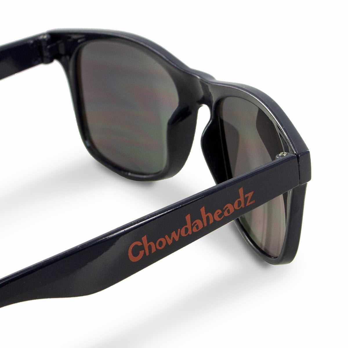 Don't get caught out in the sun without a pair of these stylish shades. Navy blue frames with the Chowdaheadz logo on the right ear piece. Rep your favorite New England-based company while protectin' ya peepahs.