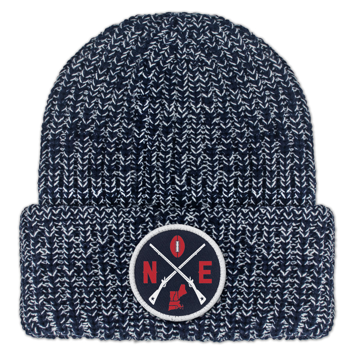 Perfect for any New England fan, this super cozy chunky knit will keep your head warm and represent your favorite region in the states. Features our custom printed leatherette designed patch on the front, so you can brave the New England wintah in style! Grab yours today before the weather changes again. Let's go New England!
