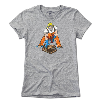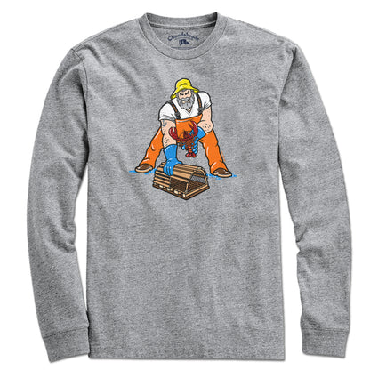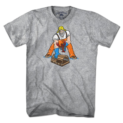 This hardworking lobsterman is ready to serve up one of New England's greatest delicacies. And if it's undersized he's gonna throw it back, probably in a perfect spiral. Celebrate New England and the hardworking men and women working our East Coast waters and getting us our seafood as fresh as it gets with this tee.