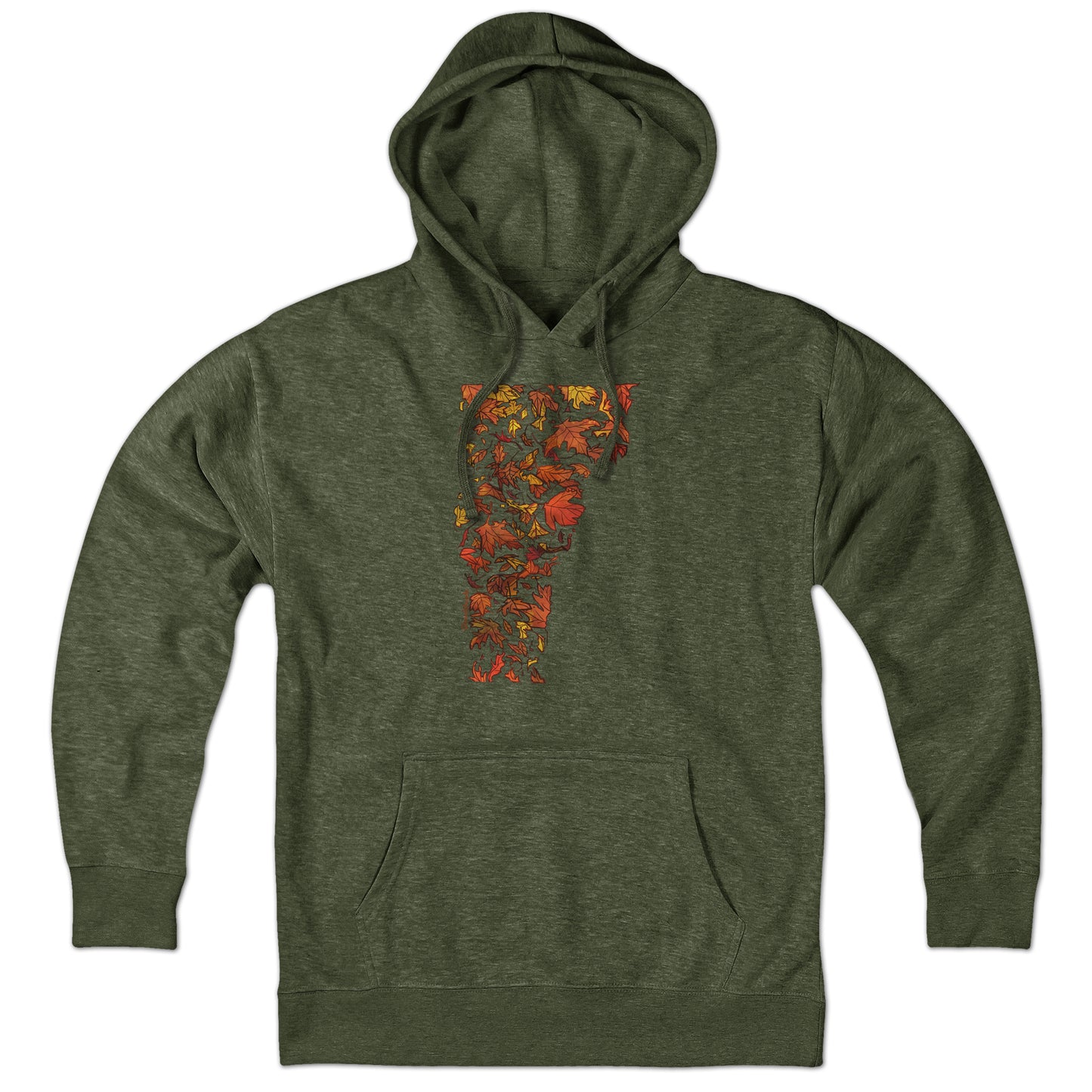 Vermont's got 3 things....cheese, maple syrup and more trees than you can count! When it hits late September what was once green goes yellow, red, orange and every other bright earthy tone. If you find yourself leaf peeping up in Vermont or just looking for something to get you into those fall vibes, this colorful fall foliage hoodie that forms the shape of Vermont is a great choice! Just in time for when those trees start to turn. We ship wicked fast so get yours today!