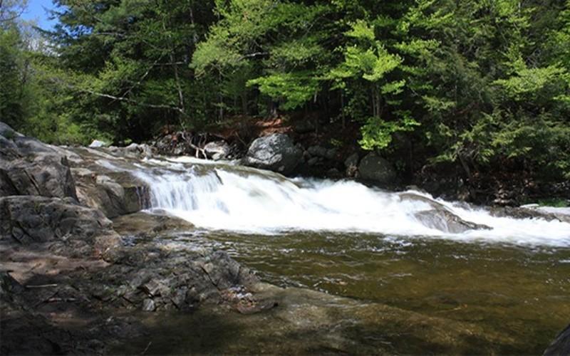 This spot is located just off Route 57 and features a 12-foot natural water slide! At the end, the swimmer is dumped into a small pool for an exhilarating splash down. There is also a shallower pool just up the river which is great for sitting and relaxing in the summer sun.