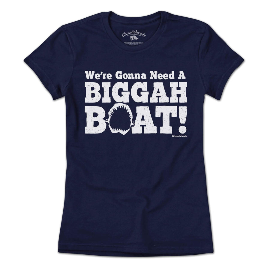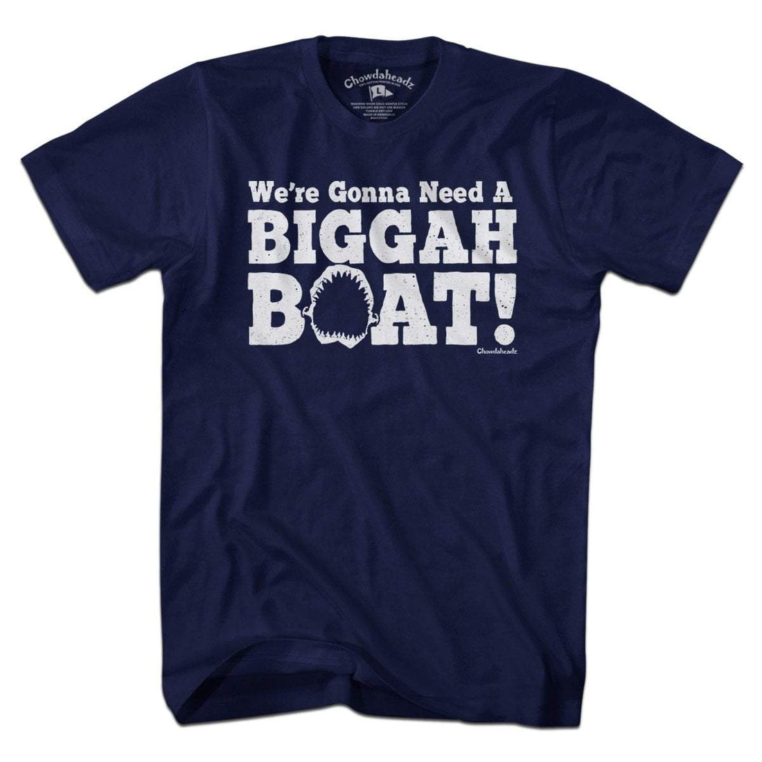 Whether your fishing on your canoe or relaxing on a cruise ship, this line will always get a laugh. It's the perfect summahtime tee whether you're onshore or out at sea. Don't go casting your rod without it. You're gonna need a bigger boat! A famous line from a famous Cape Cod film. Summer is officially here and what better way to celebrate than with this hilarious shark tee? Perfect for any beach-goer or pool-lover, and shark movie lover, this tee is sure to turn heads. With a stylish and fun fit, this tee is a great way to show your love for sharks (or just a good sense of humor). So make a splash this summer and pick up our We're Gonna Need A Biggah Boat T-shirt.