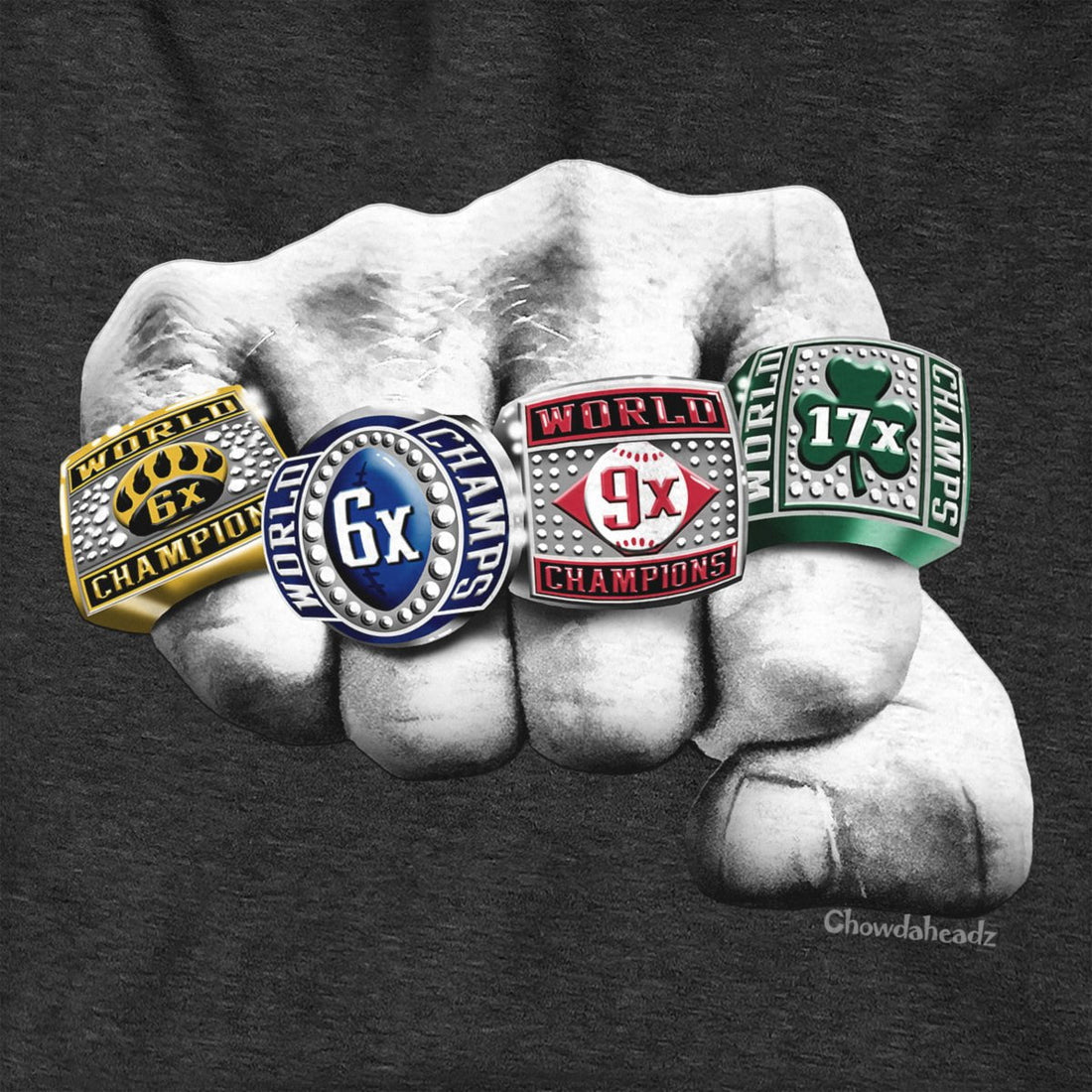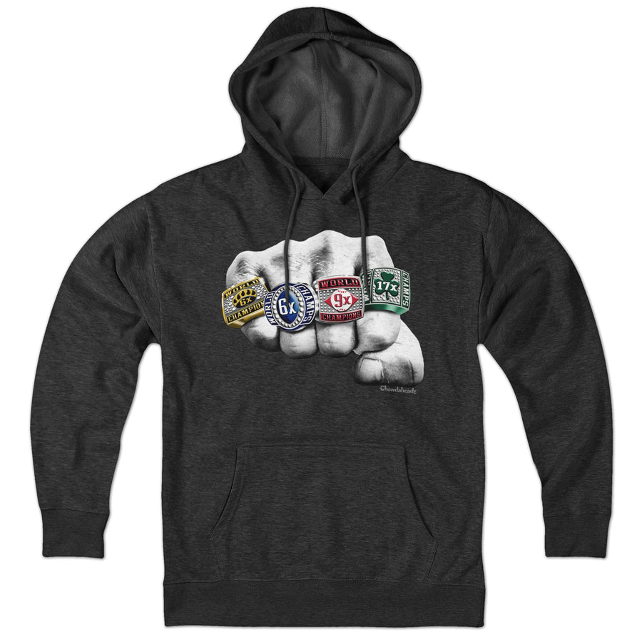 Boston and New England are known for their rings and this hoodie shows that we wear them with pride!