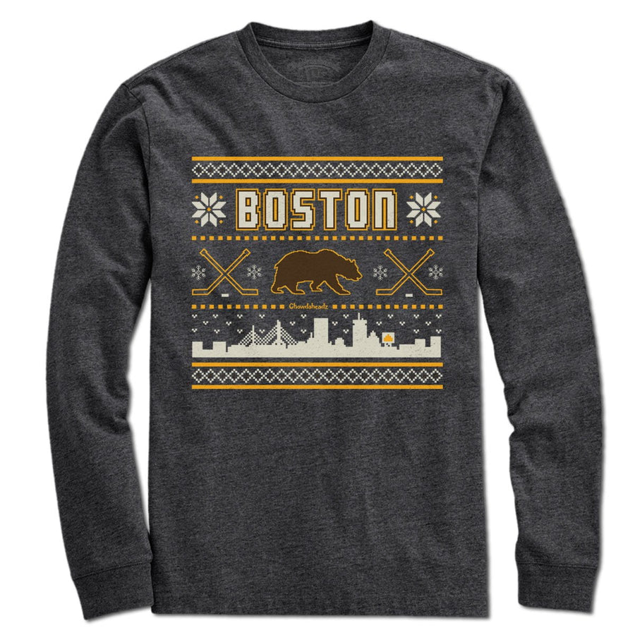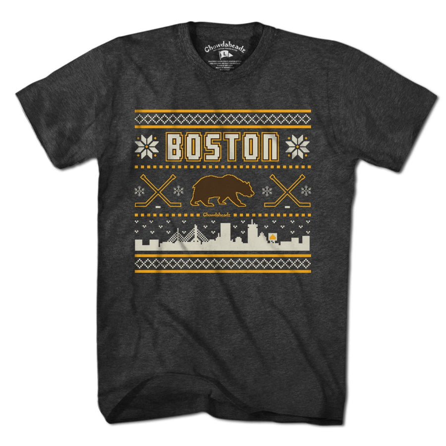 Boston Black & Gold Holiday Sweater T-Shirt - Chowdaheadz