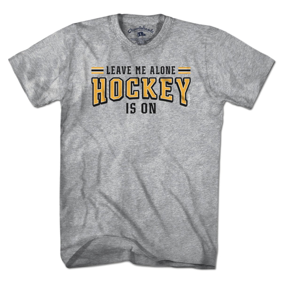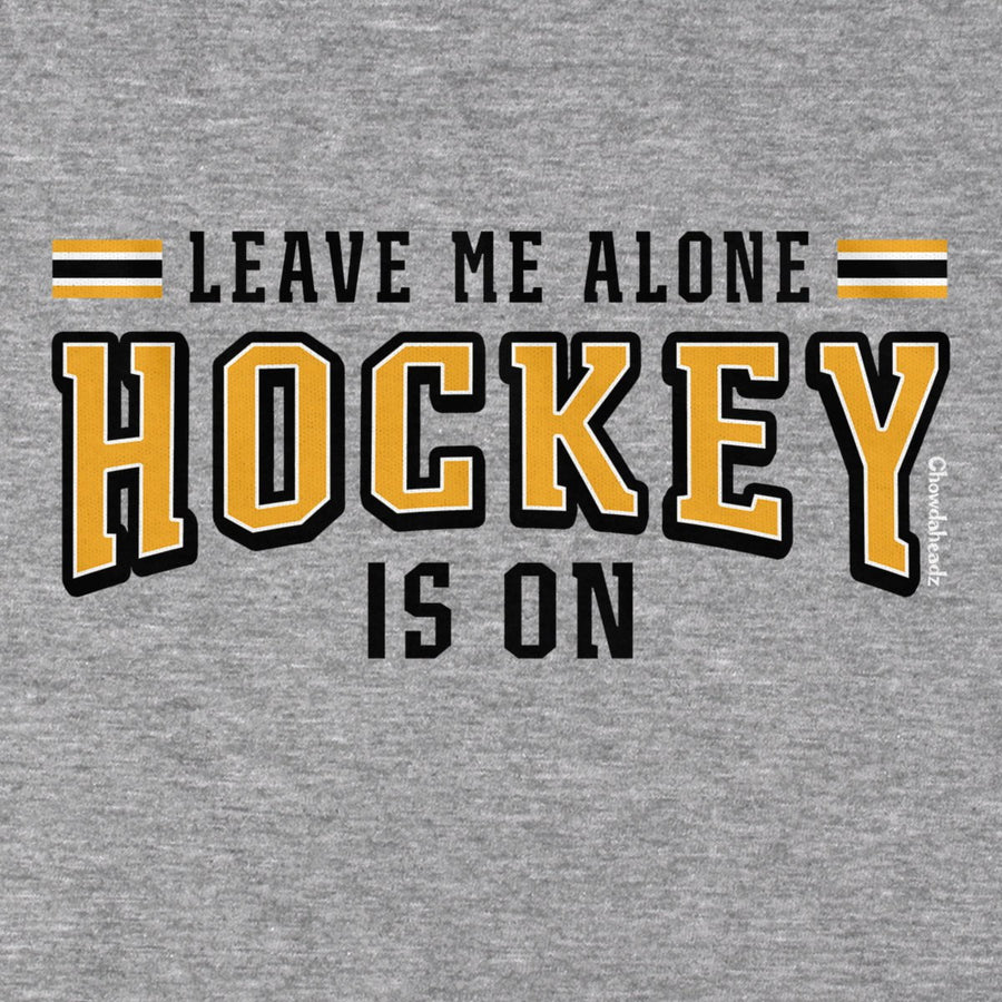 Ah, hockey season. If you need a gentle reminder to anyone in your immediate area that you are not to be disturbed, then this tee is for you. Let it be known to any and all spouses, children, in-laws, friends and relatives, significant others, roommates, pets, houseplants, fires, plagues, weather events, alien invasions, etc. that you will be available after the game, and not a moment before. Is 82 times a year (not including playoffs) too much to ask? Just pop on this tee as a sort of "Do Not Disturb" sign, and cover your bases. Perfect for the extremely focused hockey fan, and a must-have for your game-time attire this hockey season.