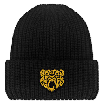 Boston B Black & Gold Skyline Chunky Knit Winter Hat -