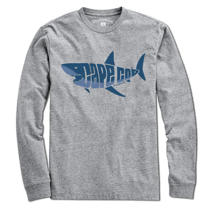 The perfect shirt for summer in Cape Cod! This hilarious Cape Cod Shark T-Shirt features the words Cape Cod in the shape of a great white shark. Show off your Cape Cod pride with this funny shark tee. More and more Great Whites are being spotted in the area every year. It seems sharks are figuring out what New Englanders have known for decades; nothing says "summah" like heading down the Cape!