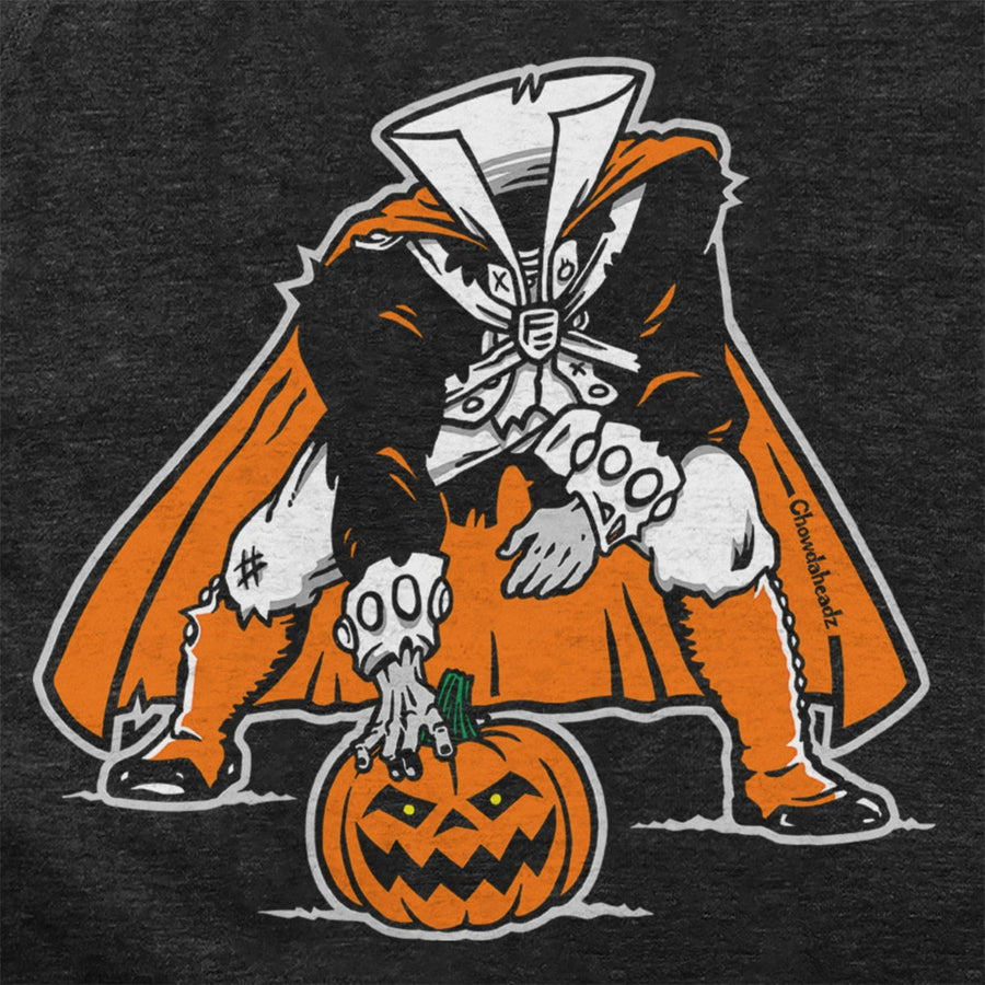 The legend of New England lives on. Freaking out townspeople in the dead of night is tough, but he's ready in his three point stance to do his job. Don't lose your head looking for the perfect Halloween hoodie for a die-hard New England fan, it's right here.