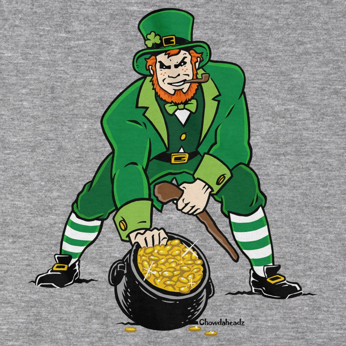 Every New Englander is Irish on St. Paddy's Day. This guy's ready to paahty in his three point stance, protecting his pot o' gold with his trusty shillelagh. Celebrate March 17th with this must-have for any Irish New England fan.