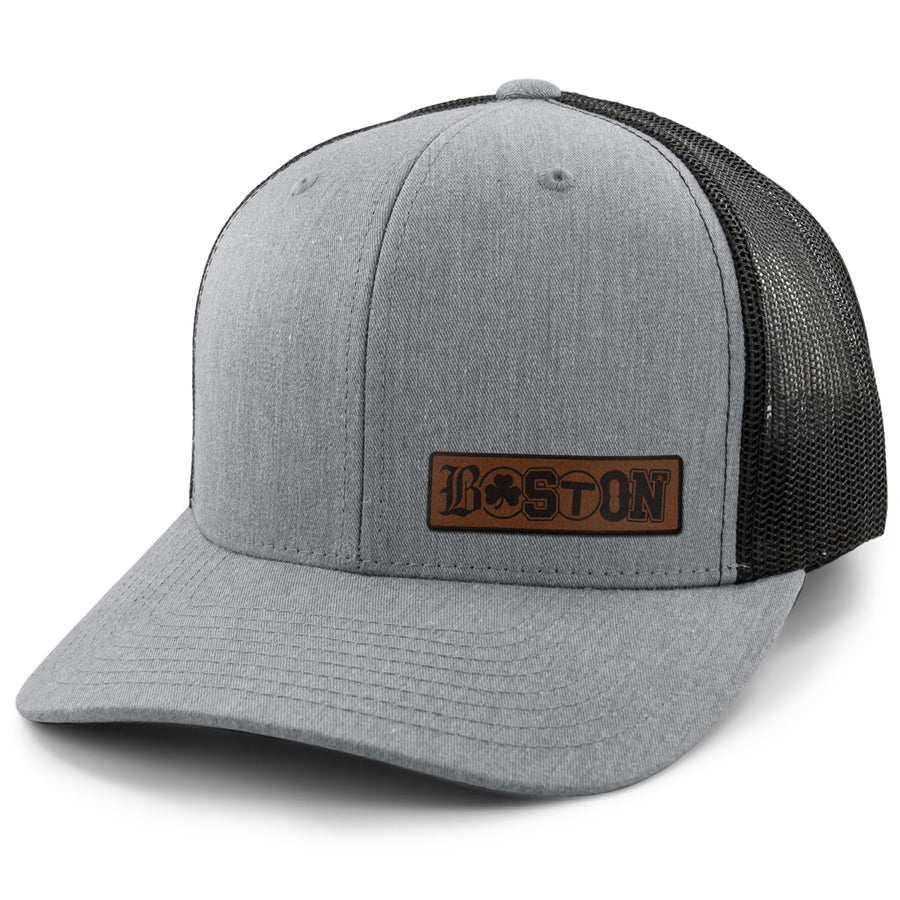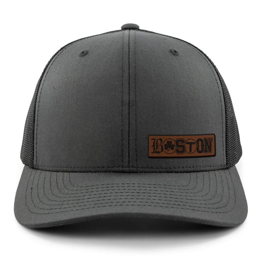 Represent your city with our leather patch "Classic Snapback Trucker." It's perfect for your next trip to the ballpahk or night out at the bar with the boys. Whether you're watching the game from the top of the monstah or just want to show some Boston pride, then this hat is for you. Features a custom lasered leatherette patch on a structured front with a dark hard mesh back. Also includes an adjustable plastic snapback that fits just about every Chowdahead out there. Catch yours today!