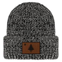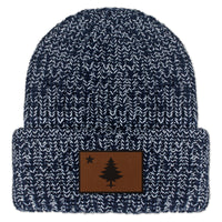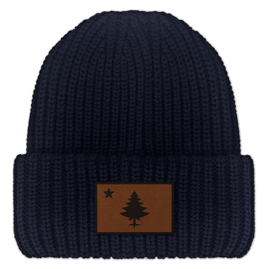 Vintage Maine Flag Leather Patch Chunky Knit Winter Hat