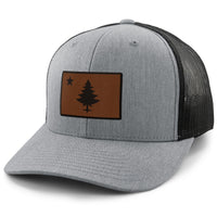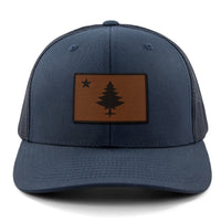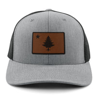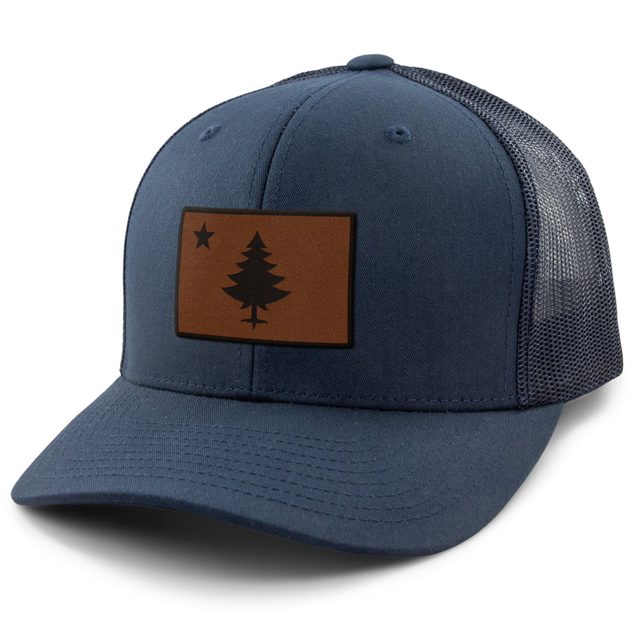 Vintage Maine Flag Leather Patch Classic Snapback Trucker Hat
