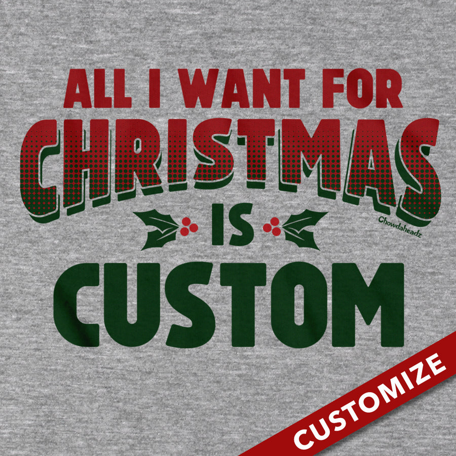 It's the 21st century, sending a handwritten letter to Santa is so old-fashioned. Let everyone know what you really want for Christmas with this customizable tee. Keep it simple with a single line, or really get greedy with up to 3 lines.