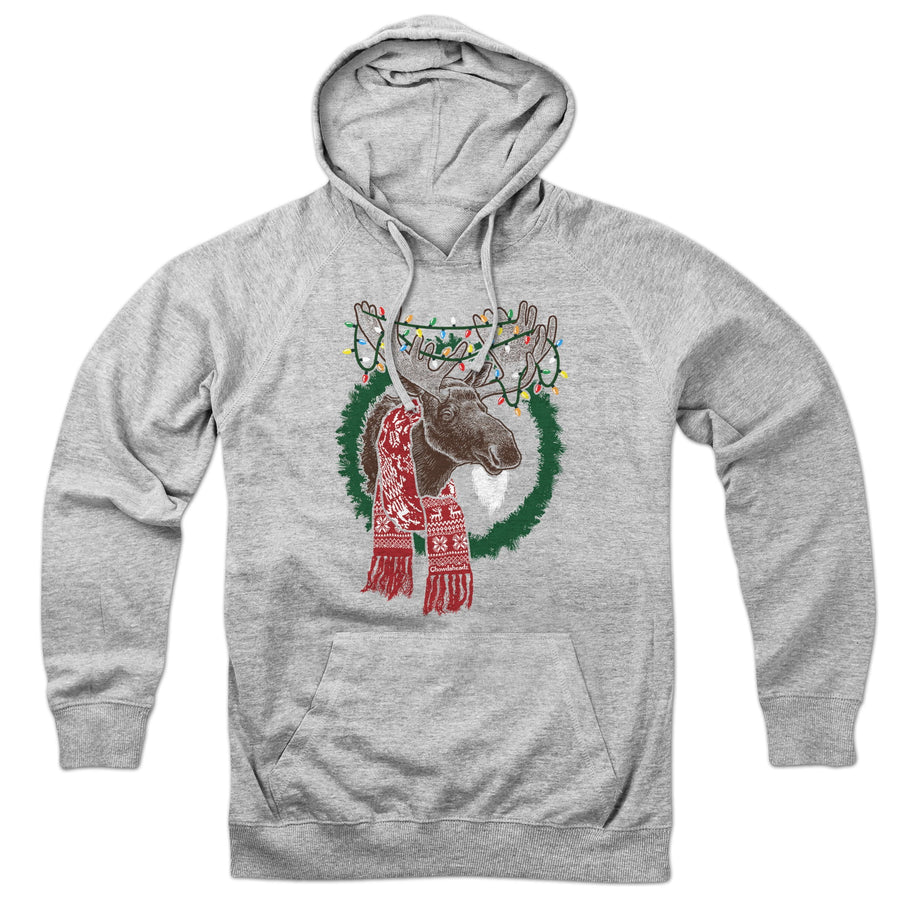 Ho Ho Ho, Merry Christmoose! The holidays are here and this guy's all wrapped up in Christmas spirit. The perfect holiday hoodiee - whether you're a Christmas nut, a Maineiac, or moose-lover (or all 3). Makes a great gift!