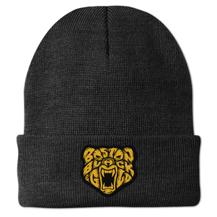 Perfect for any Boston fan, this classic cuff knit will keep your head warm and represent your favorite hockey team. Features our custom embroidered designed patch on the front, so you can brave the New England wintah in style! Grab yours today before the weather changes again. Let's go Black & Gold!