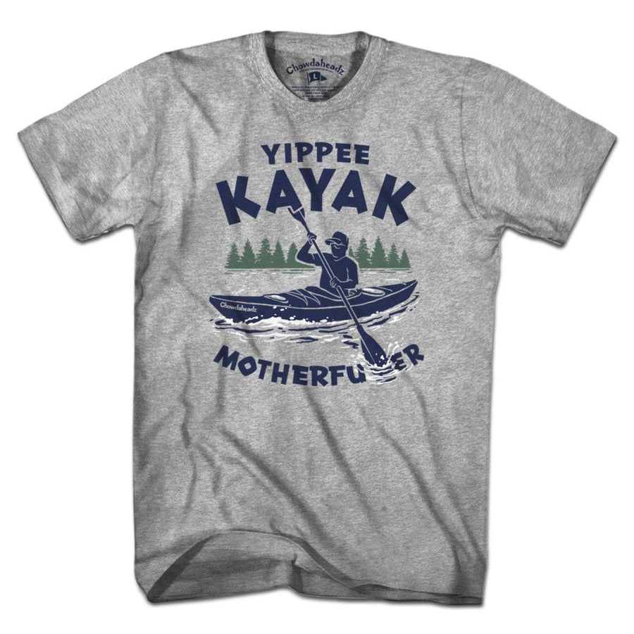 Looking for a funny kayak tee? Look no further! This Yippee Kayak T-Shirt from Chowdaheadz-T-Shirts is perfect for anyone who loves kayaking. With its funny design, this tee is sure to make you stand out on the lake. Made from high-quality materials, this shirt is comfortable to wear all day long. Whether you're hitting the lake for a leisurely paddle or going on a whitewater adventure, this shirt is a great way to show your love for kayaking. This funny kayaking tee is a great gift or just to show your love for paddling to nowhere.