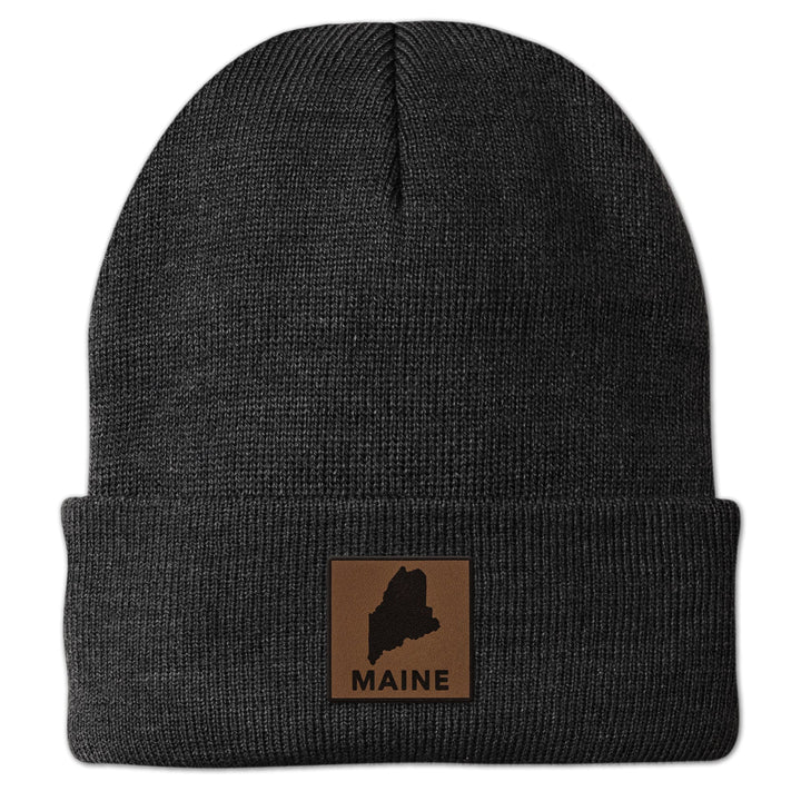 Maine State Wood Grain Patch Chunky Knit Winter Hat -