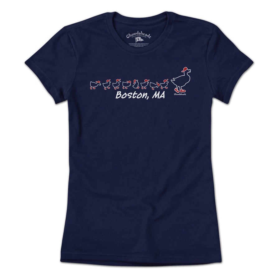 Get your quack on with this Boston Ducks On The Common T-Shirt. This unique t-shirt features the Boston ducks waddling around the Boston Common. This is the perfect shirt for any proud Bostonian who loves ducks, nature, and spending time outdoors. Made from high-quality materials, this t-shirt is sure to be a new favorite in your wardrobe.
