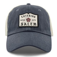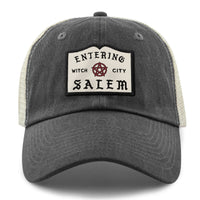 Get "witchy" with our Entering Salem "Relaxed Trucker." It's perfect for your next haunted ghost tour or trip to Witch City. Whether you're representing your hometown or just visiting your favorite Halloween destination, this hat is for you. Features a custom printed twill patch on a stonewash front with a wicked soft mesh back. Also includes an adjustable plastic snapback that fits just about every Chowdahead out there. Get lucky and grab yours today! We ship wicked fast.