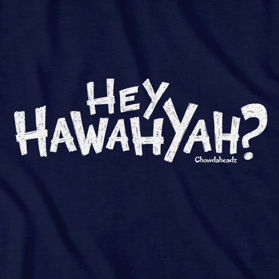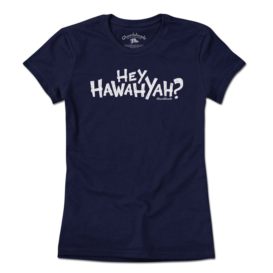 It's not really a question, and they don't actually want an answer. It's the unofficial all-purpose greeting of New England. You can't get three feet down the street in Boston without someone hitting you with a "Hey Hawahyah?". Whether you just made accidental eye-contact with a stranger, meeting someone for the first time, or running into someone you haven't seen in 20 years, grab this design and ask 'em "Hey Hawahyah?"