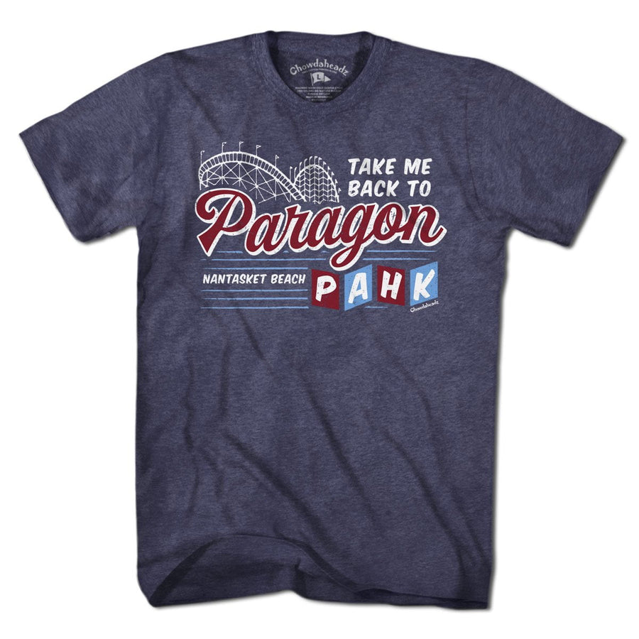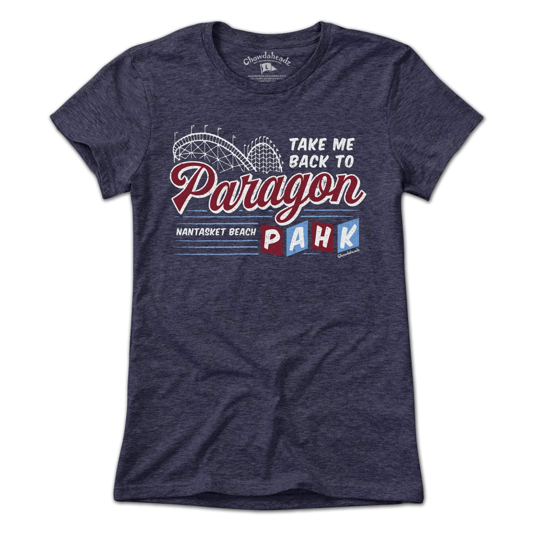 A once-iconic part of Nantasket Beach, Paragon Park was a monument to a simpler time. If you remember the rides, the arcade, and miss the clams and saltwater taffy, this tee will have you saying "Take Me Back to Paragon Pahk!"