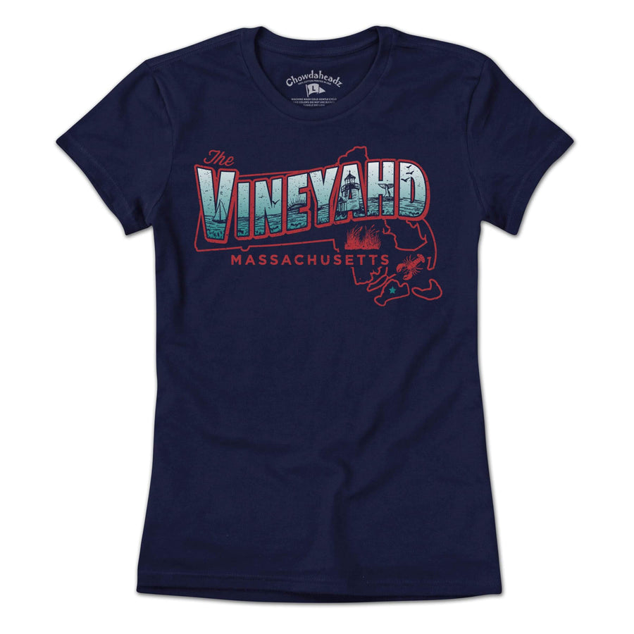 From tourists to townies, everybody knows one of the best places in Massachusetts to spend the summah is Martha's Vineyard, or "The Vineyahd" if you're local. Grab this tee and fill out your summah wardrobe.
