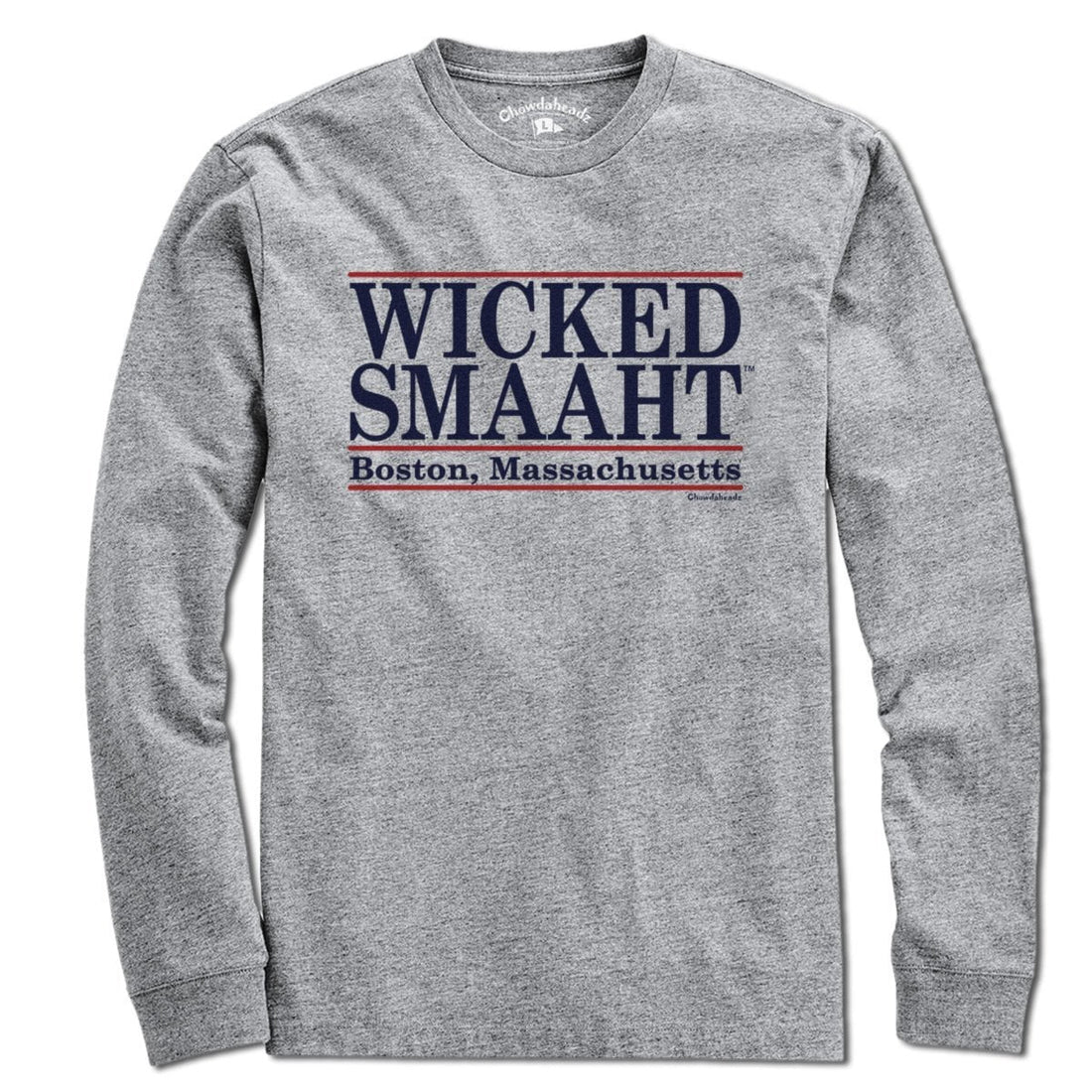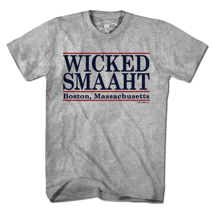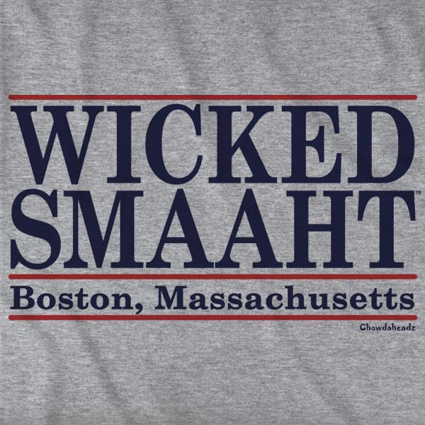 Be "Wicked Smaaht" this school year with this Chowdaheadz exclusive t-shirt. Not in school? Don't worry, this motto isn't just for book grinders. Whether we're at work, watching the game or playing trivia at the local bar, we all think we're Wicked Smaaht. So show off your brains and your love for Boston with this wicked awesome t-shirt. Perfect gift for the know-it-all in your family. Available in Navy or Sport Gray and ships wicked fast. Grab yours today!Product Details