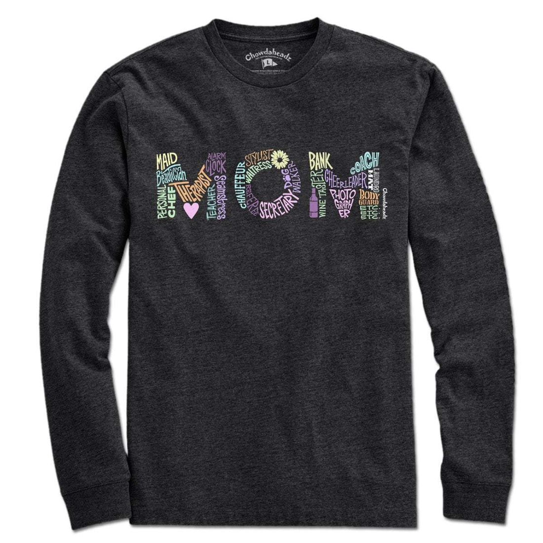 CAUTION: MOM AT WORK! Being a mom means wearing a lot of hats job-wise. Some people's 9-5 is just one of the millions of things a mom has to handle. We know there's more, but we managed to fit 20 in this design, and they all make up what it takes to be a mom. Show your mom you appreciate her and her several titles with this tee.