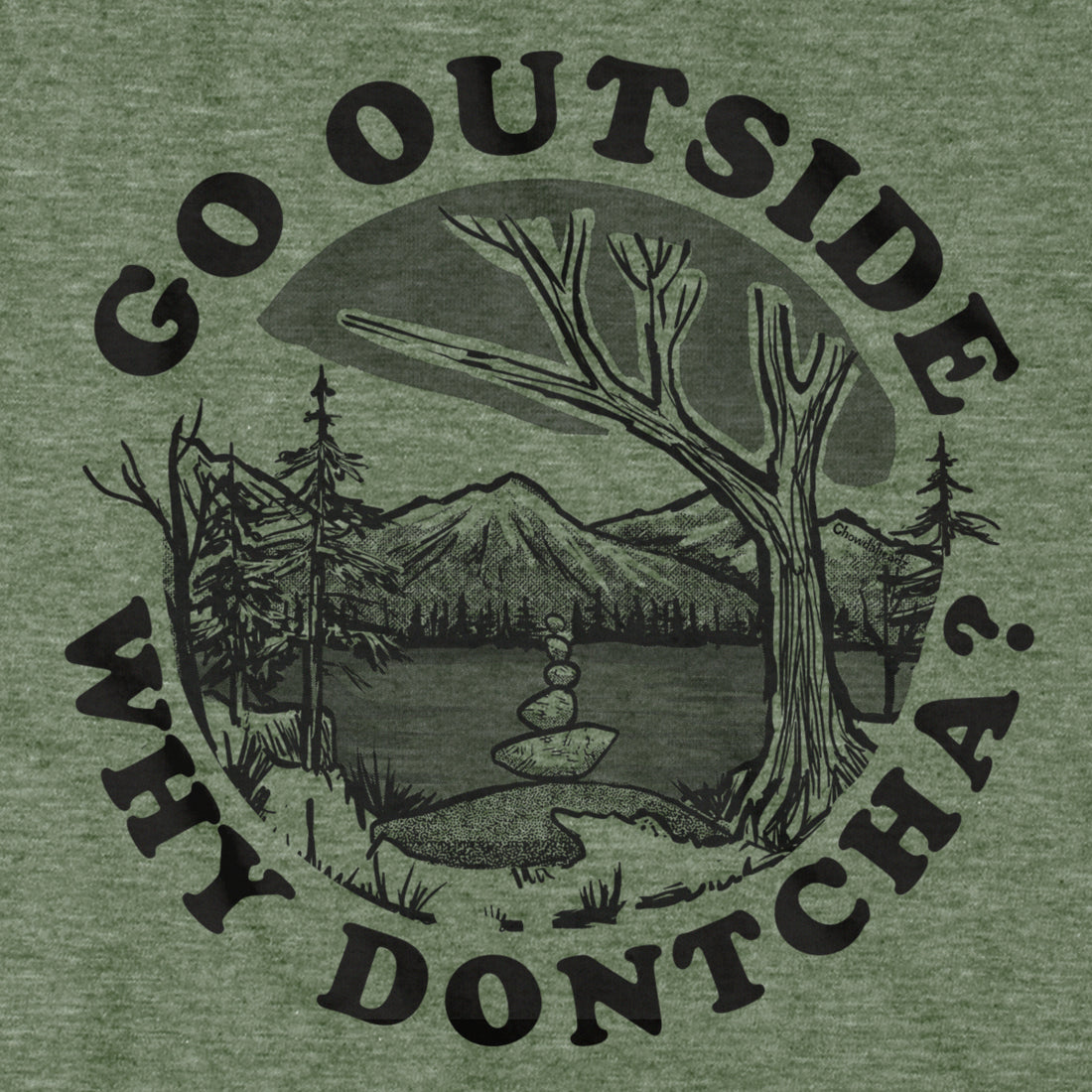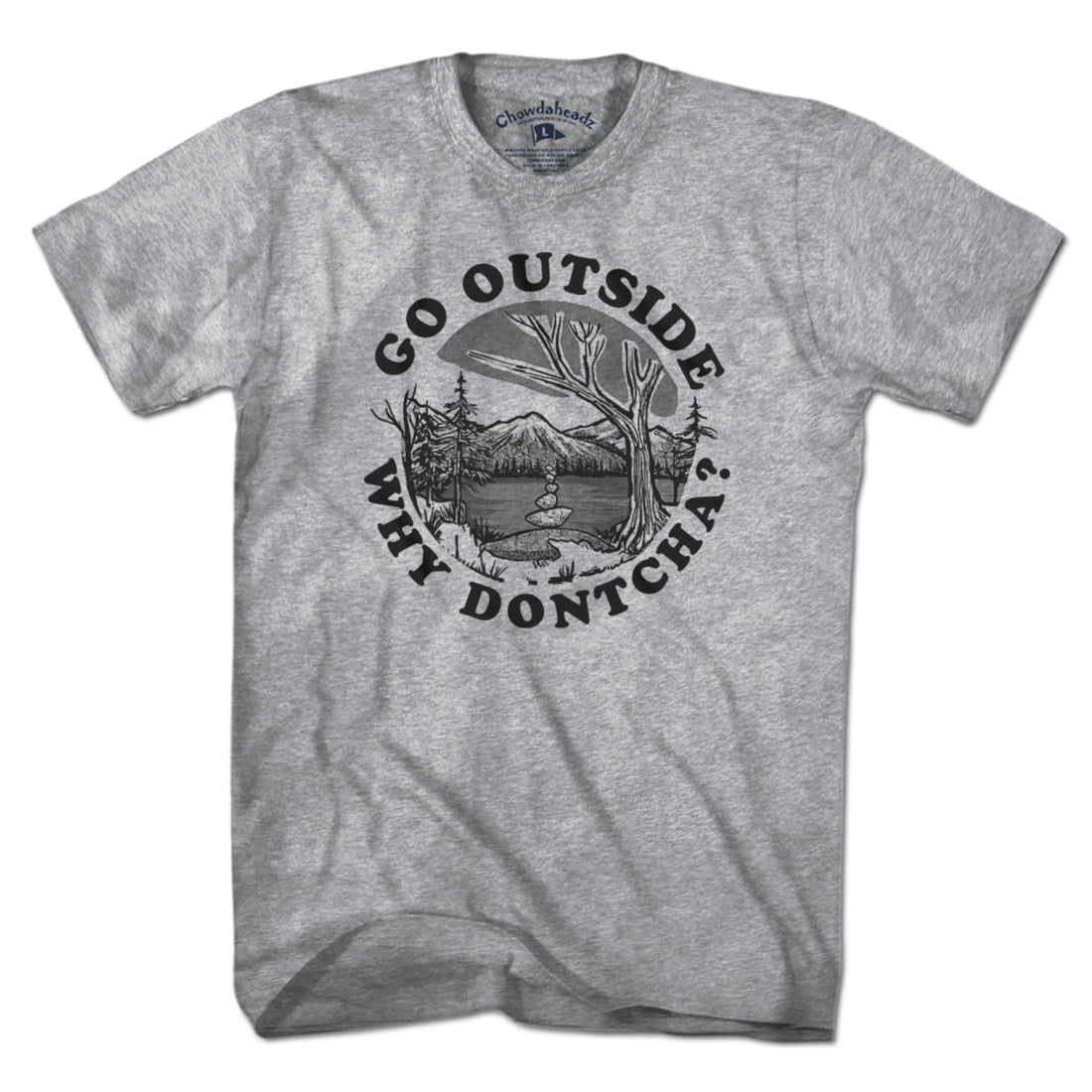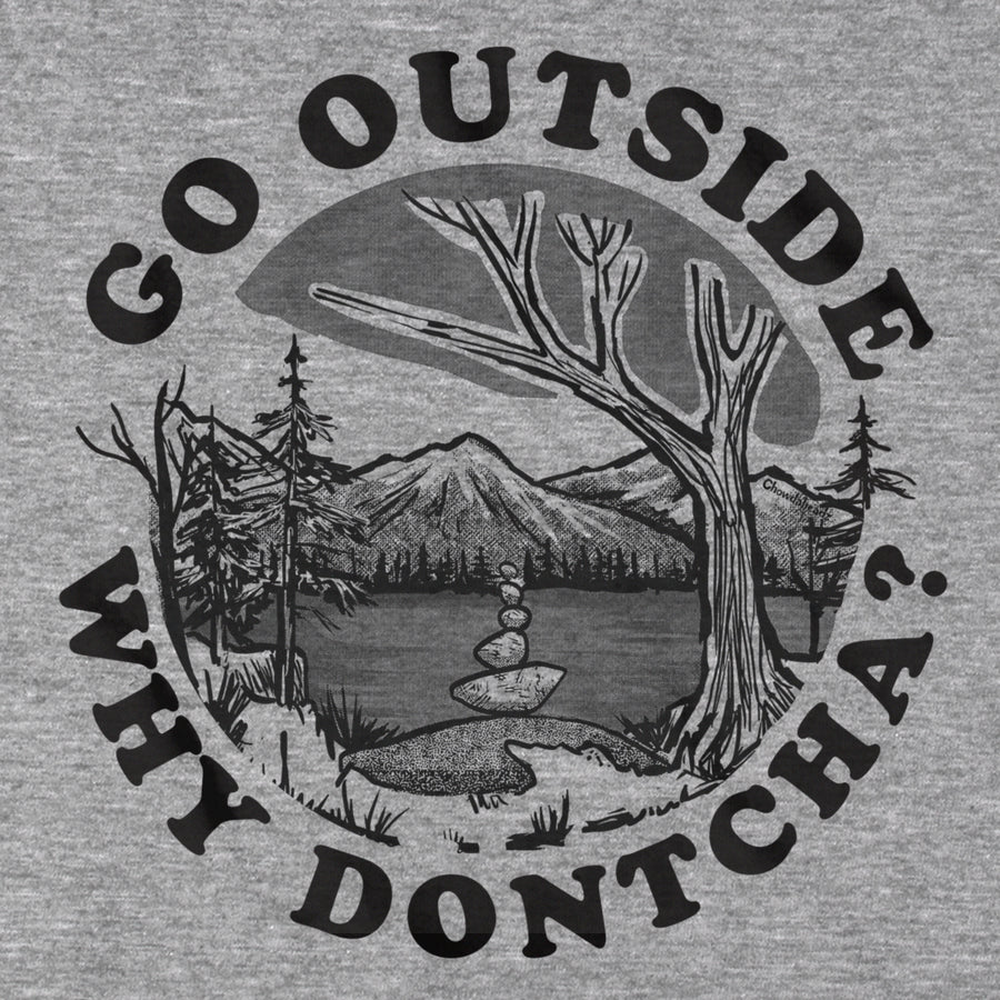 If you're looking for a great shirt for those who consider the woods their extended backyard, look no further. This shirt is great for anyone enthused by the outdoors. So….. why dontcha grab something fun to wear with this "Go Outside Why dontcha?" t-shirt? Great for any hiking or camping trip!