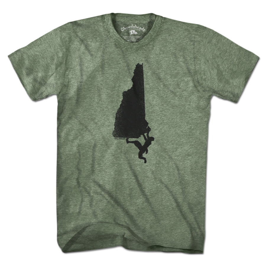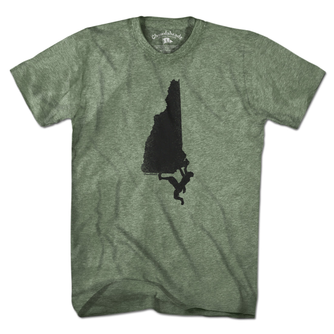 Are you a fan of going up dangerous vertical places in the granite state? Then why not dress to match your passion with this New Hampshire rock climber t-shirt.