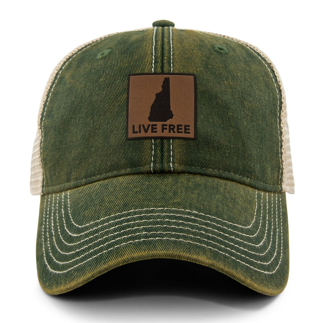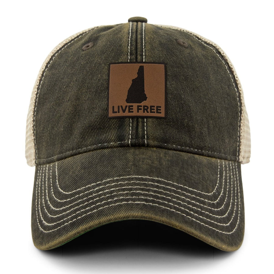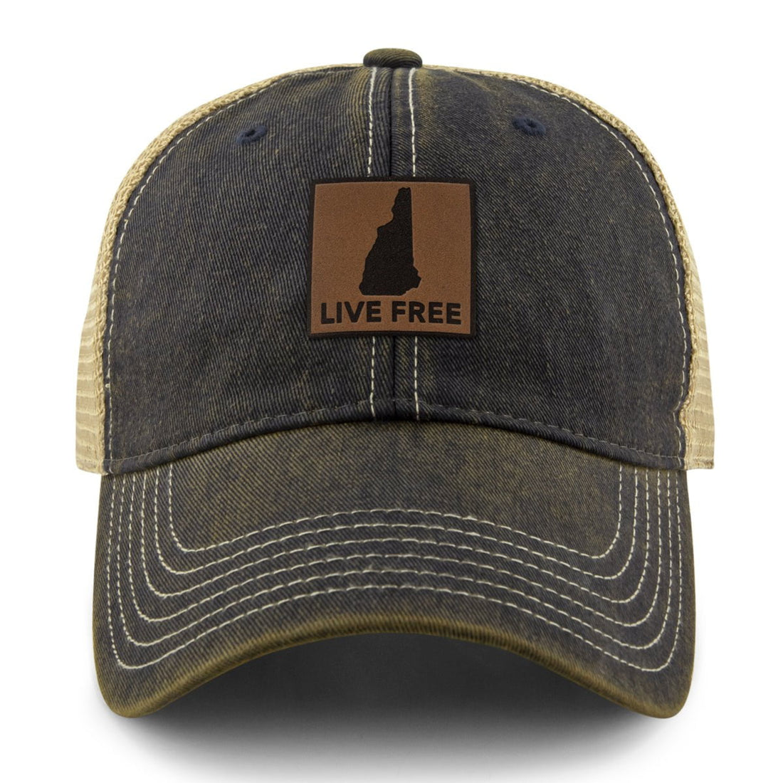 Live Free New Hampshire Leather Patch Dirty Water Trucker Hat
