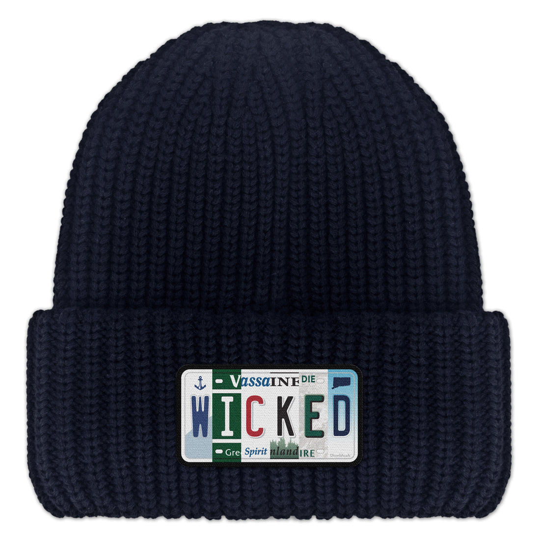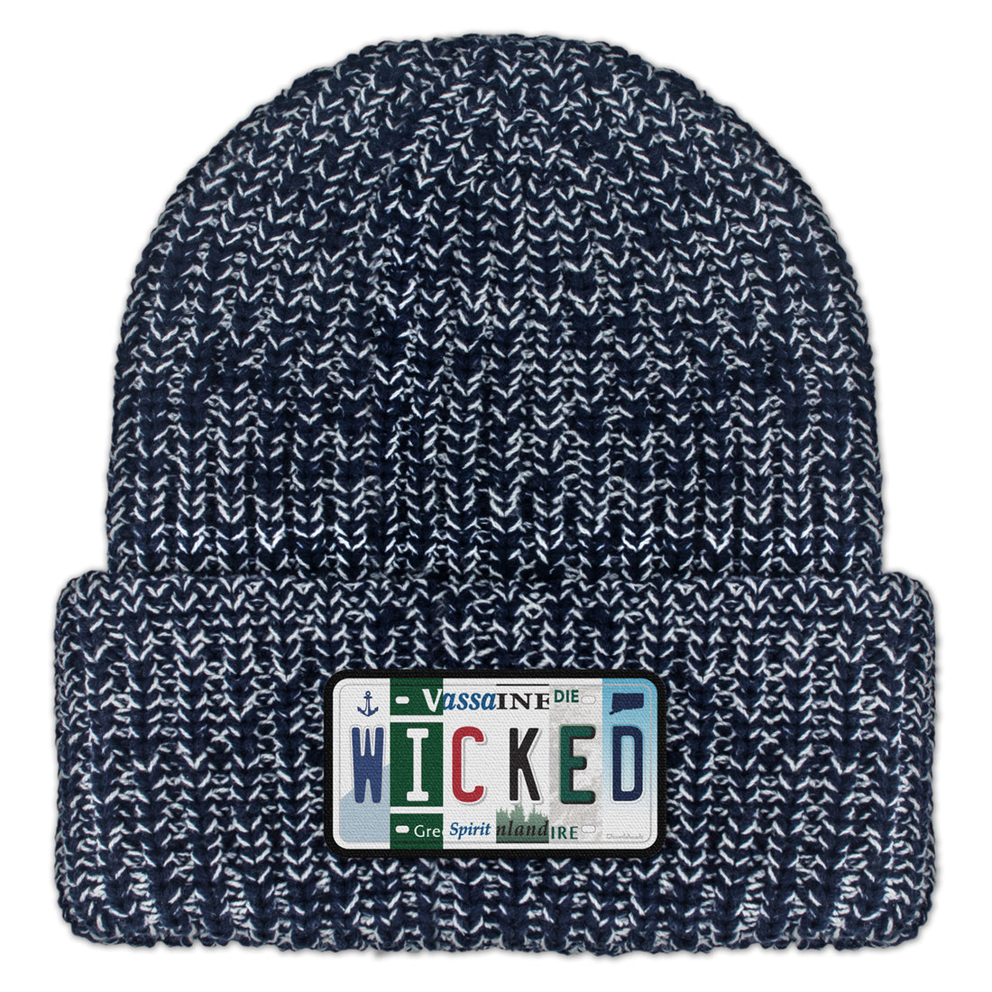 Wicked New England License Plate Leather Patch Chunky Knit Winter Hat