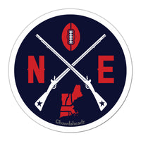 Let's go New England! This sticker is perfect for showing off your love of football and your New England pride. Our stickers are cut from vinyl with permanent adhesive backing, utilize a full color design detail and are UV rated for outdoor use.