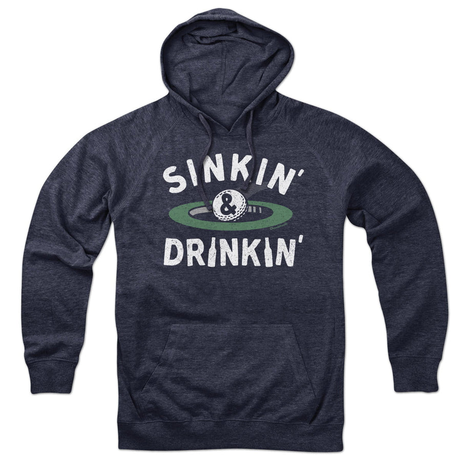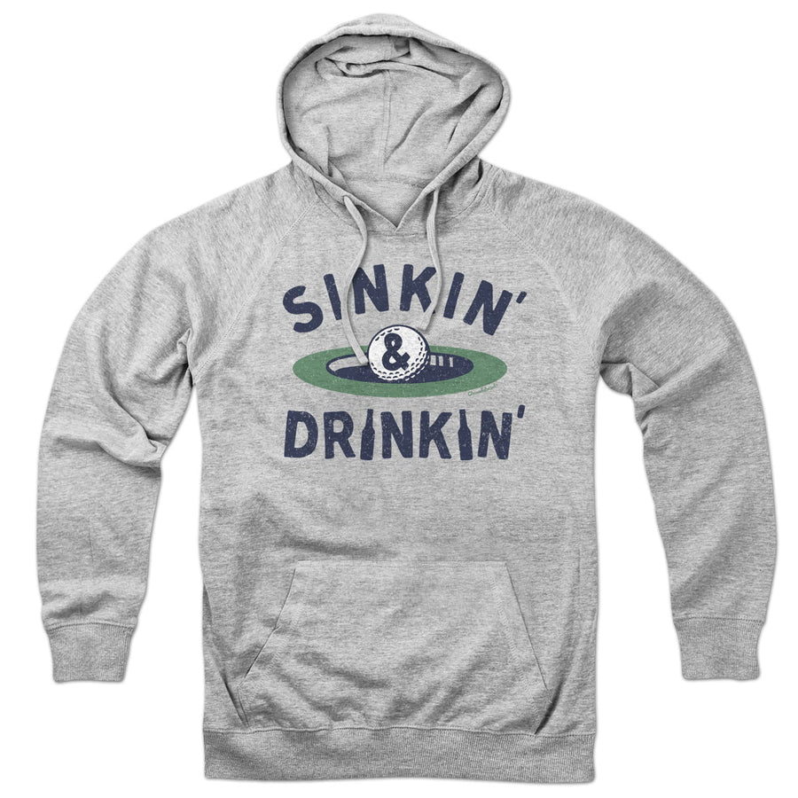 It's time to tee off in style with this Sinkin' & Drinkin' Golf Hoodie. This comfortable hoodie is perfect for those early morning rounds or for layering on a cool evening. With a front pocket and drawstring hood, you'll be able to keep your focus on your game and not on the cold. And when you're ready to hit the 19th hole, this golf hoodie is the perfect choice for celebrating your victory.