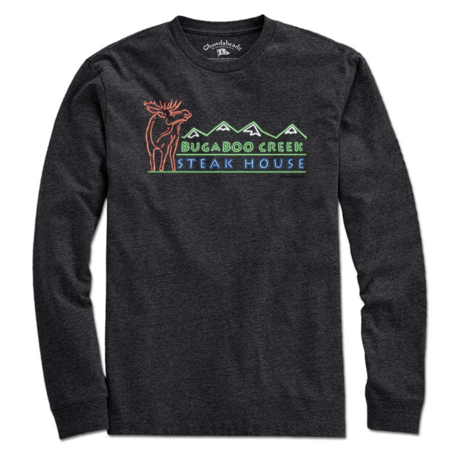 Does anyone else remember that ol' steakhouse off the highway? For those who do, we made a shirt to share those hungry memories of the infamous Bugaboo Creek. After all, the place might be gone but will never be forgotten!
