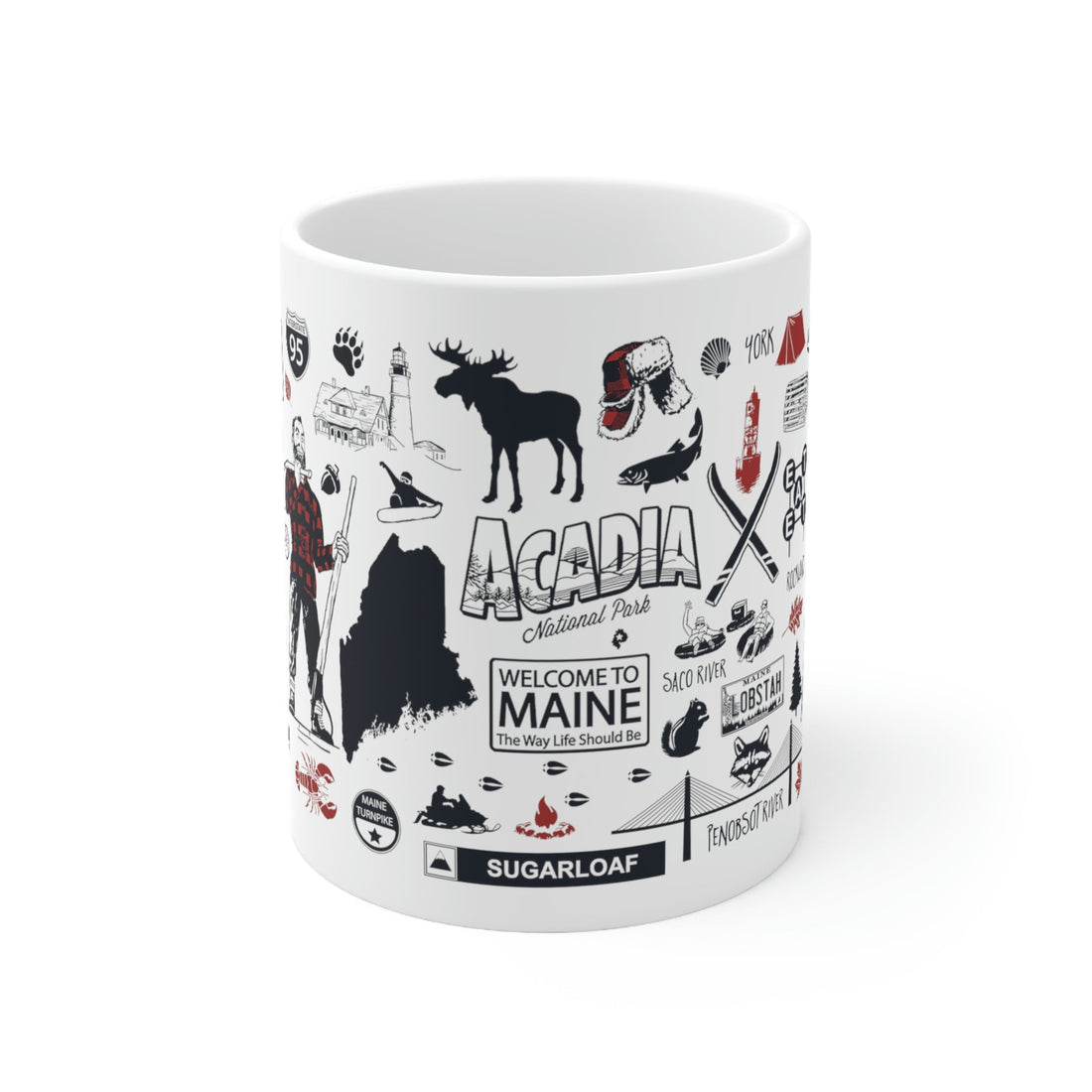 Enjoy a fresh cup of coffee with a mug that showcases a lot that maine has to offer. Whether you're a local or a tourist, you can enjoy every morning with a mug that marks what there is to do in New England's largest state.