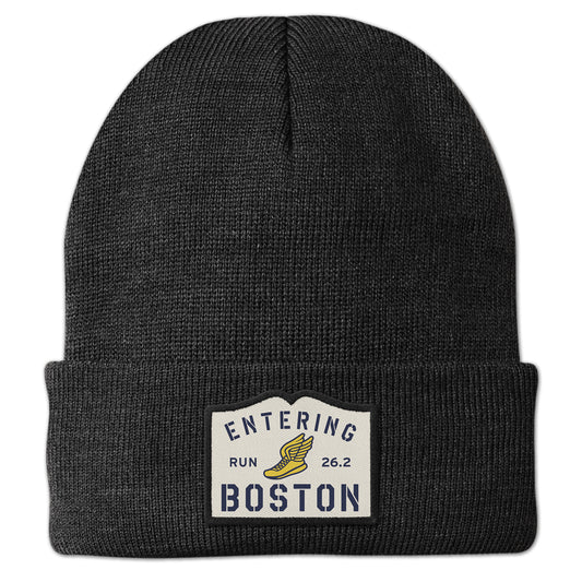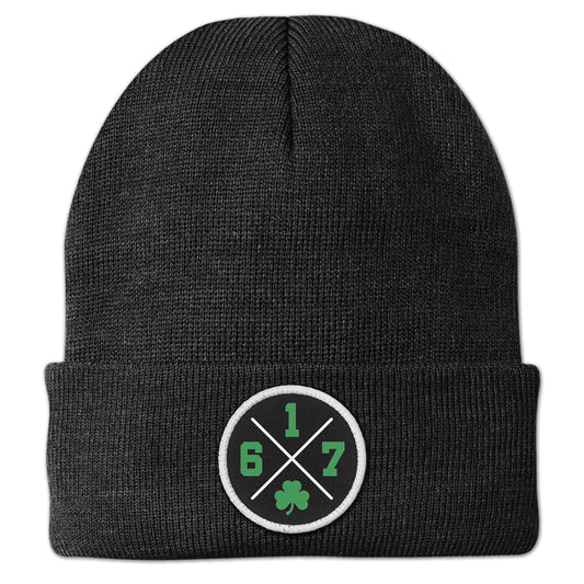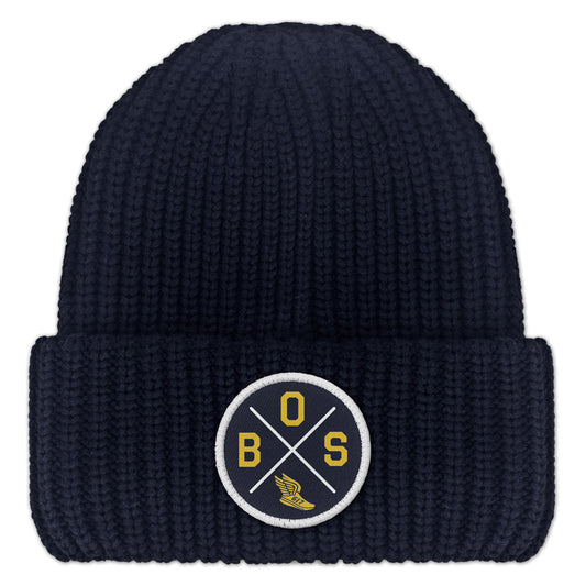 Black & Gold Boston Naval Patch Chunky Knit Winter Hat -