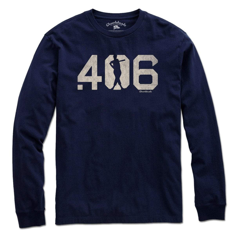 A salute to the greatest hitter to evah to put on a Boston uniform. In 1941, #9 was the last player to achieve this unbelievable feat. Celebrate the Splendid Splinter and America's Pastime with this wicked awesome tee. This .406 Hitter T-Shirt is the perfect way to show your love for Boston baseball legend. He was the last player to hit over .400 for a season and is considered one of the greatest hitters of all time. This shirt features the .406 that he hit during the 1941 season. Show your Boston pride and support for one of the greatest hitters in baseball history with this shirt.