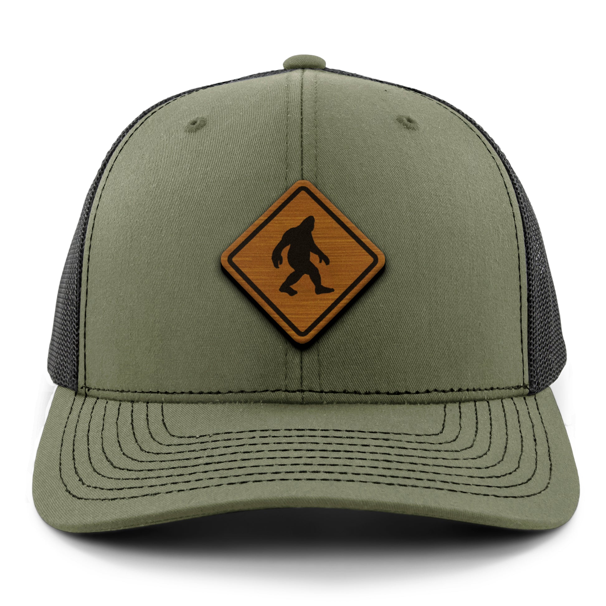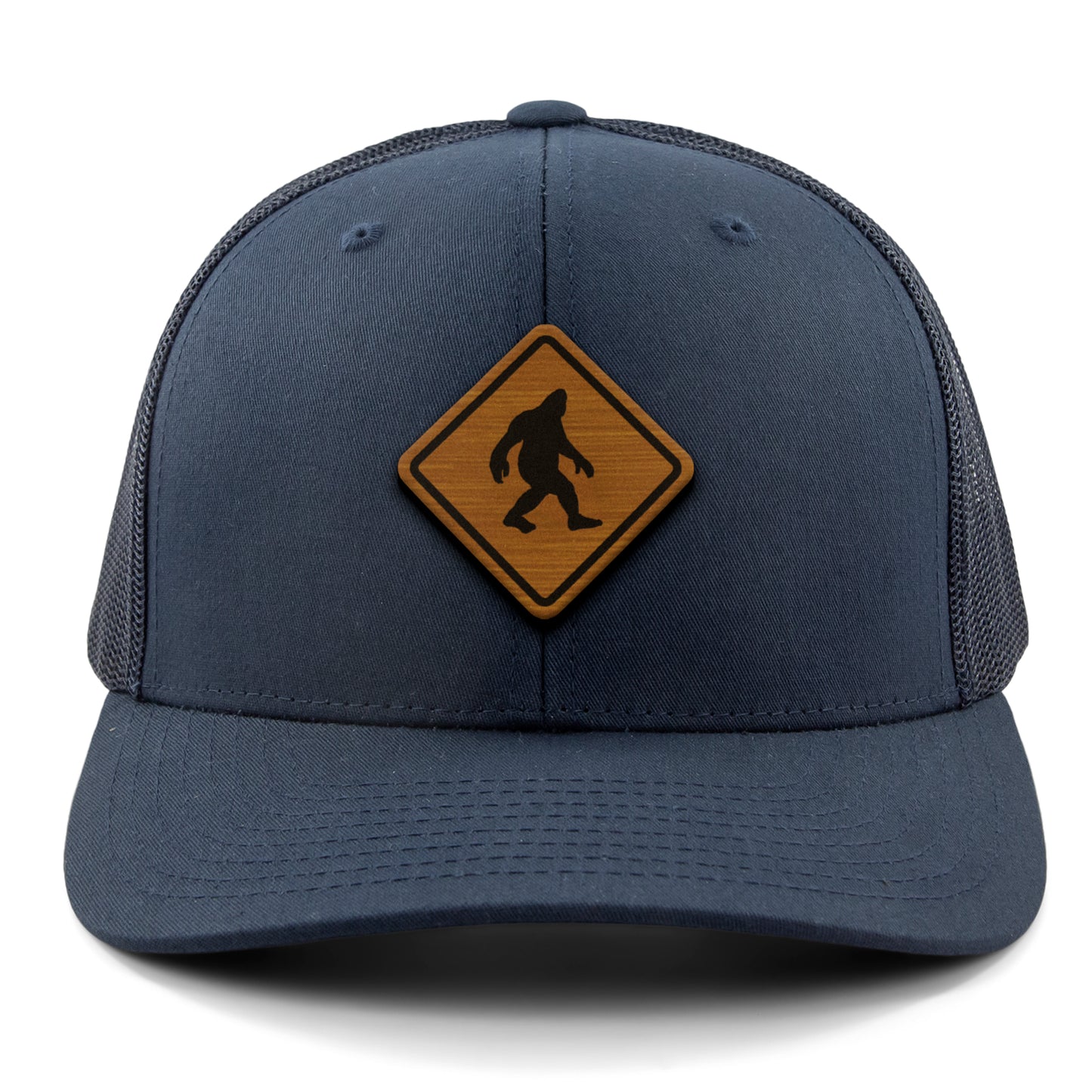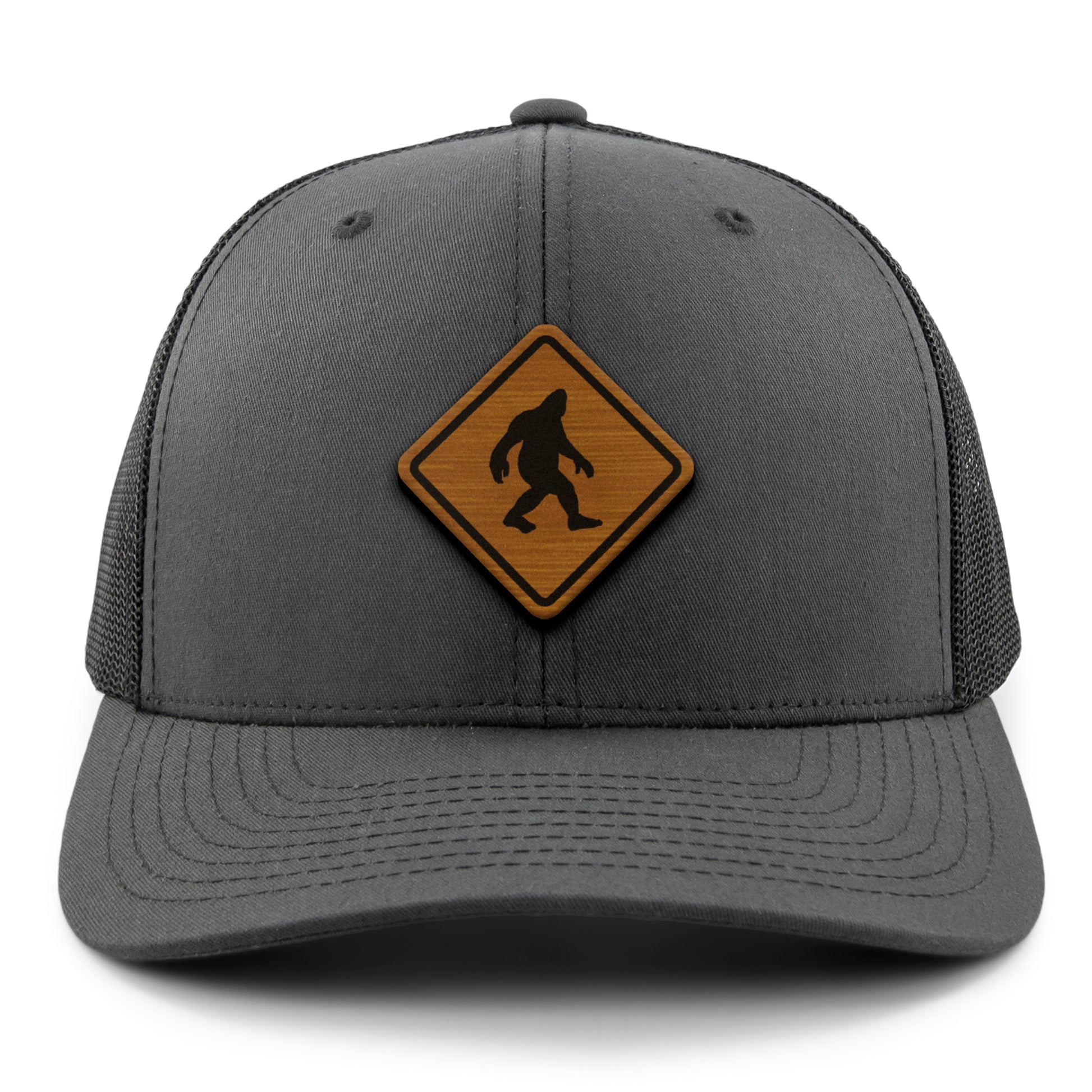 Forget about moose, deer or bear crossing the street when there's a 8 foot tall bigfoot roaming around the woods. Be prepared for whatever crosses the road and look shaahp with our Bigfoot crossing wood grain classic snapback trucker hat. If the legends are true you'll be ready.