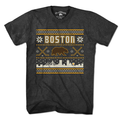 Deck the halls with this fun and festive holiday T-shirt. Boston is one of the most celebrated cities during the holidays and this shirt captures all the magic. With a contrast black and gold design, it's perfect for any occasion. Whether you're wearing it to a party, running through the snow or just lounging around the house, this T-shirt will keep you warm and cheerful all season long.