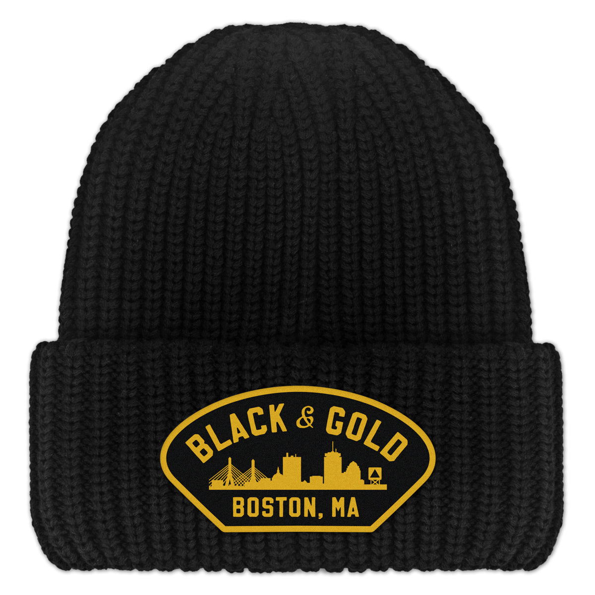 Black & Gold Boston Naval Patch Chunky Knit Winter Hat