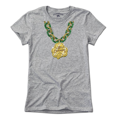 The bling doesn't lie! Boston just won their 18th championship. Nothing complements a championship ring like a big gold chain. Accessorize in style with this tee.