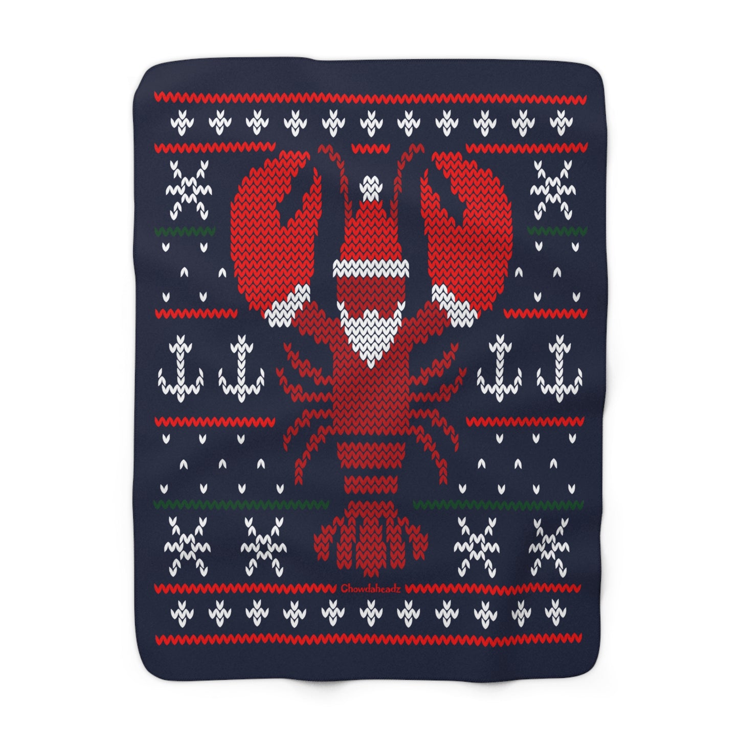 Boston Lobstah Ugly Holiday Sweater Sherpa Fleece Blanket