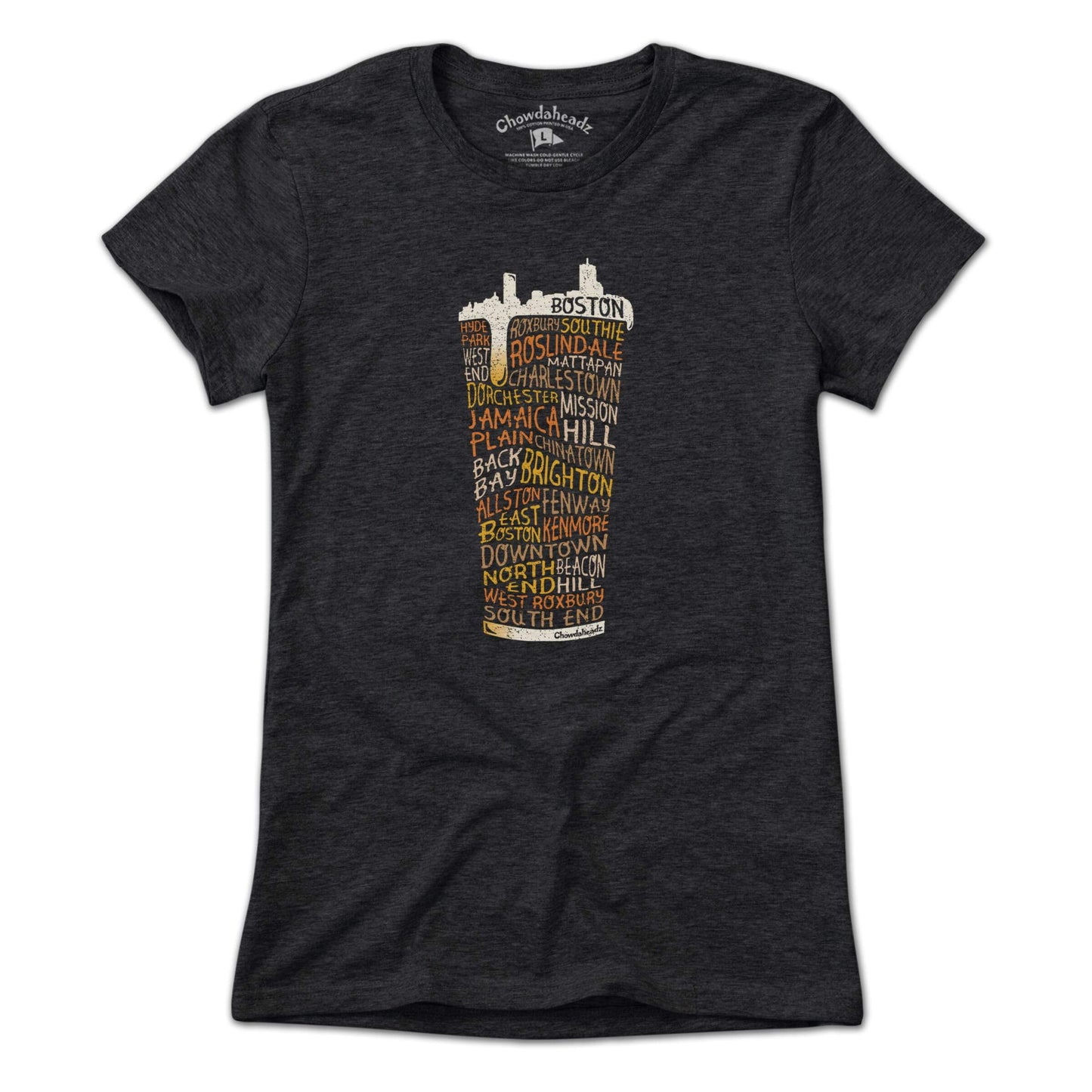 This isn't your ordinary pint glass, and Boston isn't your ordinary city! Show off your love for the best city evah with our Boston Neighborhood Pint Glass Tee. This pint is filled up with the Boston neighborhoods and topped off with the skyline we love so much. Drink it in... it always goes down smooth
