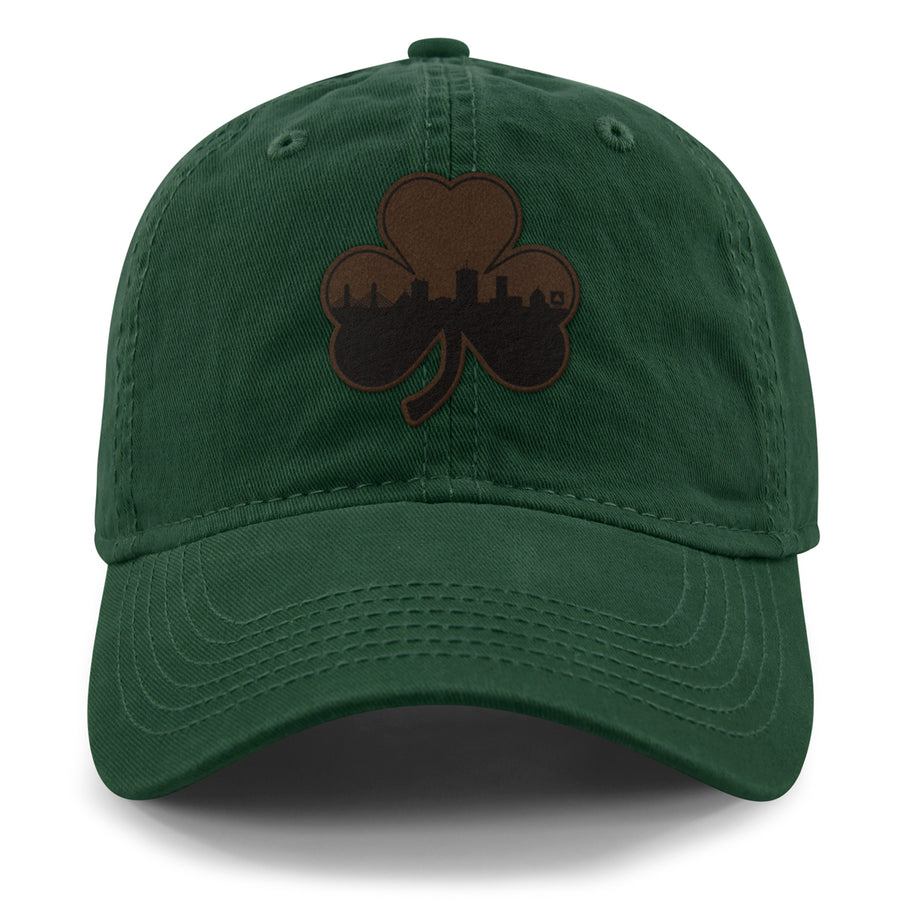 Boston Shamrock Skyline Leather Patch Dad Hat