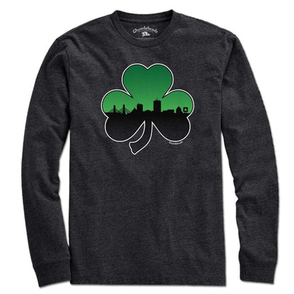 Show your Irish pride and love for Boston with this wicked awesome design. Features the city's infamous skyline in a shamrock that pays homage to Boston's heritage. If you bleed green and want to rock out with your shamrock out then this is the design for you. Perfect for St. Patty's Day, or any day your want to celebrate the best city evah!
