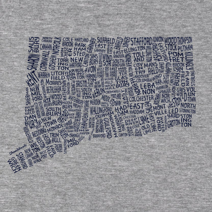 There are 169 cities and towns in Connecticut, and they're all on this tee! AND, they're in the right(ish) spot. So now when someone hears you're from the good ol' Constitution State and asks "where ya from?", you can just point!