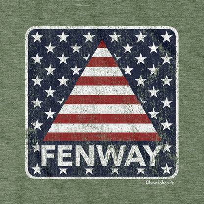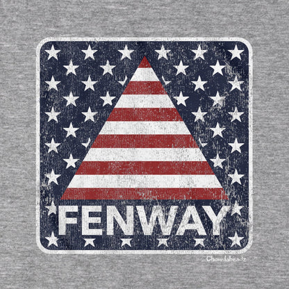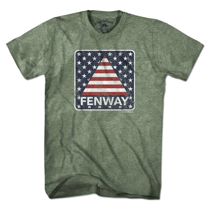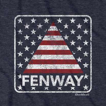 A Boston icon mixed with a little USA pride! Celebrate your patriotism and love of the Fenway area with this great tee! The perfect attire for your next ballgame or cookout.