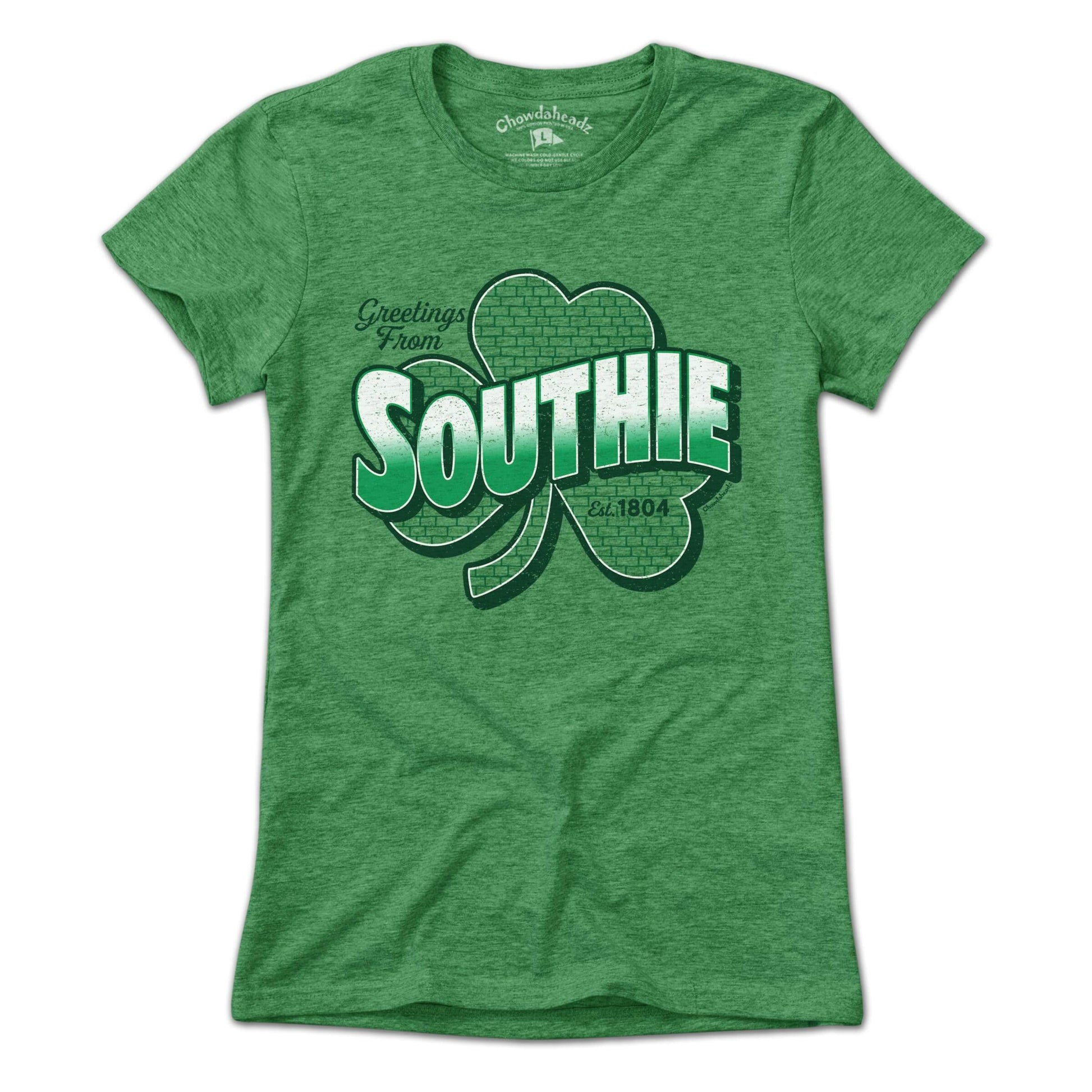 Represent Southie with this wicked awesome tee! Show 'em where you're from and grab this tee before you head down to watch the parade. Perfect for the true local or your Irish buddy who still loves grabbing a Guinness at the bar to watch the game.
