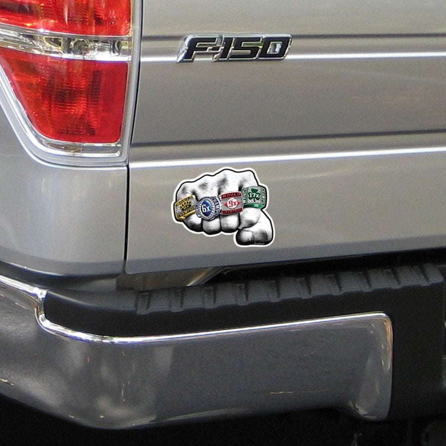Boston and New England are known for their rings and this sticker shows that we wear them with pride! The design that inspired the famous ESPN magazine cover is one of our all-time best sellers. A decade of dominance! Boston is the only city in history to wear all these rings at once. Get this sticker now to celebrate the greatest era in sports history!